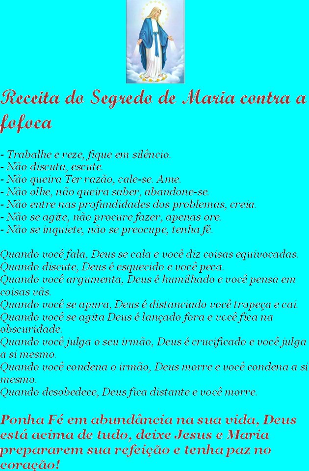 Termine esta oração com 1 Pai Nosso, 1 Ave-Maria e 1 Glória)