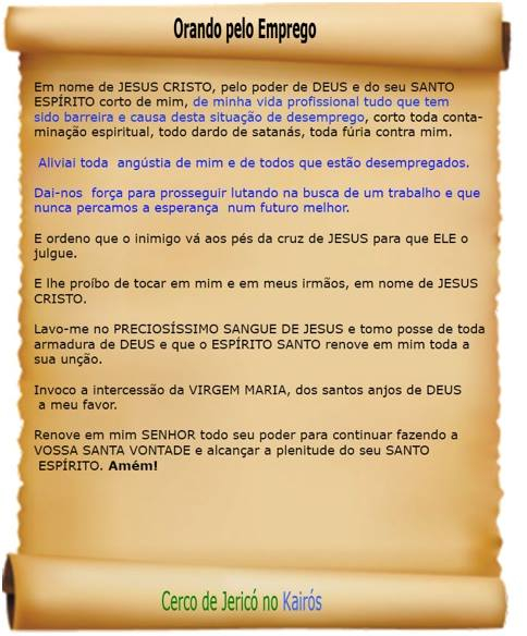 Senhor Jesus, peço por todos que estão passando por situações difíceis no trabalho, protegei-os com Teu imenso amor, para que não sejam prejudicados no seu trabalho, não sofram discriminação na família, por uma situação momentânea de desemprego.