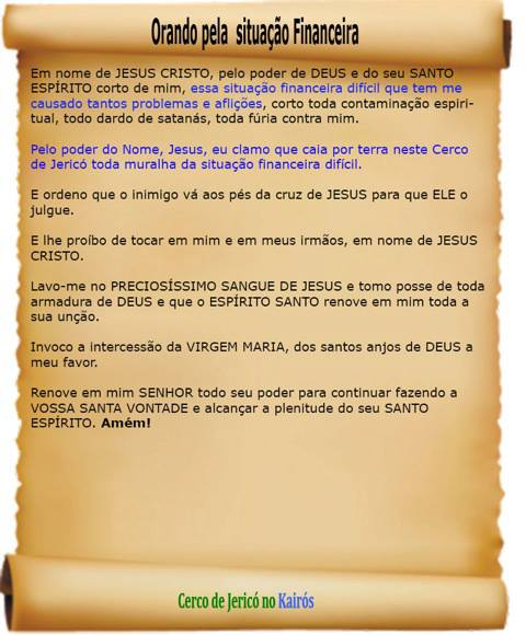 No Nome do Senhor Jesus Cristo e pelos merecimentos de Seu Preciosíssimo Sangue, quebro e dissolvo toda e qualquer maldição.