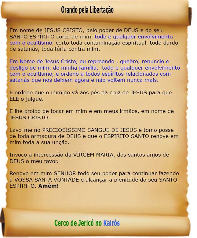 Eu renuncio em nome de Jesus † (sinal da cruz), a todo e qualquer ato praticado no ocultismo.
